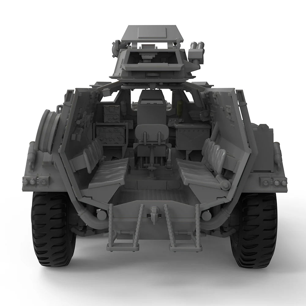 Built by Coventry's prestigious Alvis Company, renowned for crafting superior motor vehicles, the FV603 Saracen represented a shift in focus when operational demands in Malaya necessitated an armoured personnel carrier over the planned Saladin armoured car. The Saracen accommodated a two-person crew with capacity for ten troops: commander and wireless operator forward, eight soldiers in rear-facing bench seating along the chassis sides. Its robust cross-terrain capability and compact profile made it ideal for internal security and peacekeeping operations worldwide, establishing its legacy as a versatile platform for constabulary and garrison duties rather than conventional armoured warfare.