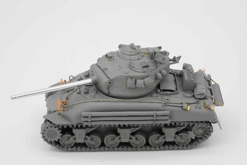 The M4A1 Sherman 76W was an upgraded version of the iconic American medium tank, fielded during the latter stages of World War II. With its rounded cast hull, “wet” ammunition stowage (to reduce the risk of catastrophic fires), and the powerful 76mm gun, this variant was designed to counter increasingly formidable German armour such as the Panther and Tiger. The M4A1 76W saw extensive service from the Normandy campaign through to the final battles in Germany, proving itself as a versatile and reliable workhorse of the Allied forces.
