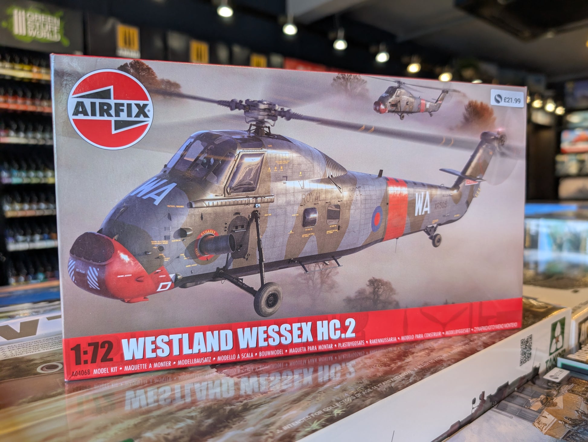 The Airfix 1/72 scale Westland Wessex HC.2 (kit number A04068) is a newly tooled plastic model kit that represents the Royal Air Force's HC.2 variant of the Westland Wessex, a British-built turbine-powered helicopter derived from the American Sikorsky H-34.