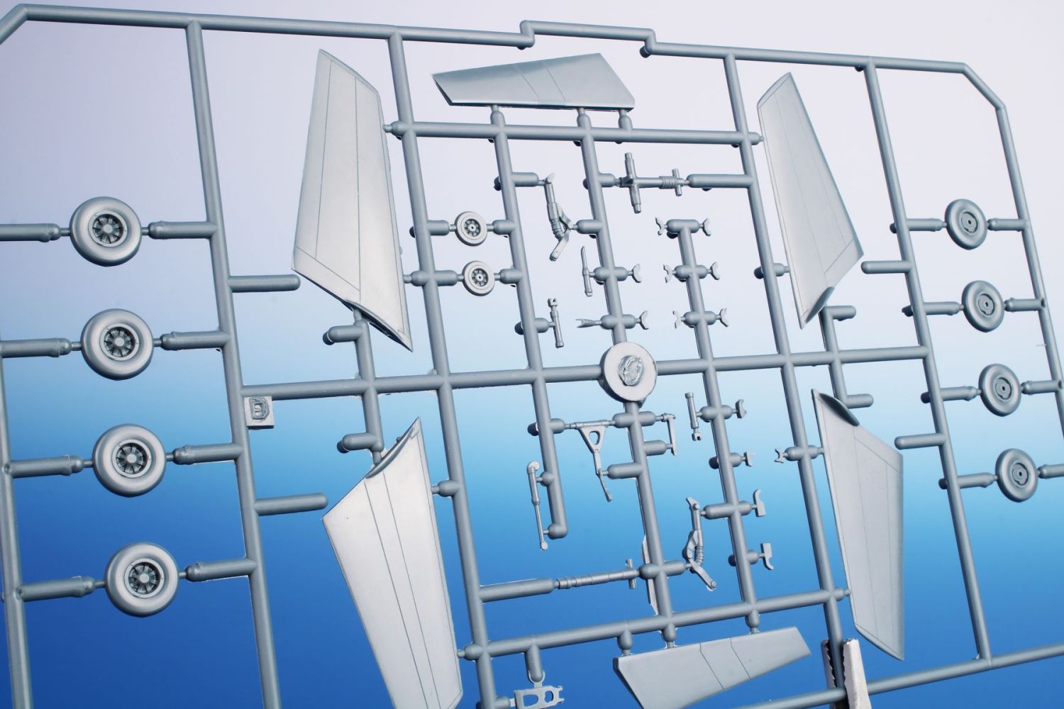 This kit includes four plastic sprues, a clear parts sprue, etched details, and resin components. Decals provide markings for four Israeli Air Force aircraft across five camouflage patterns, featuring one plane in two different schemes, including natural metal finish. This is a reissue of a rare and historically significant model, showcasing diverse camouflage styles.
