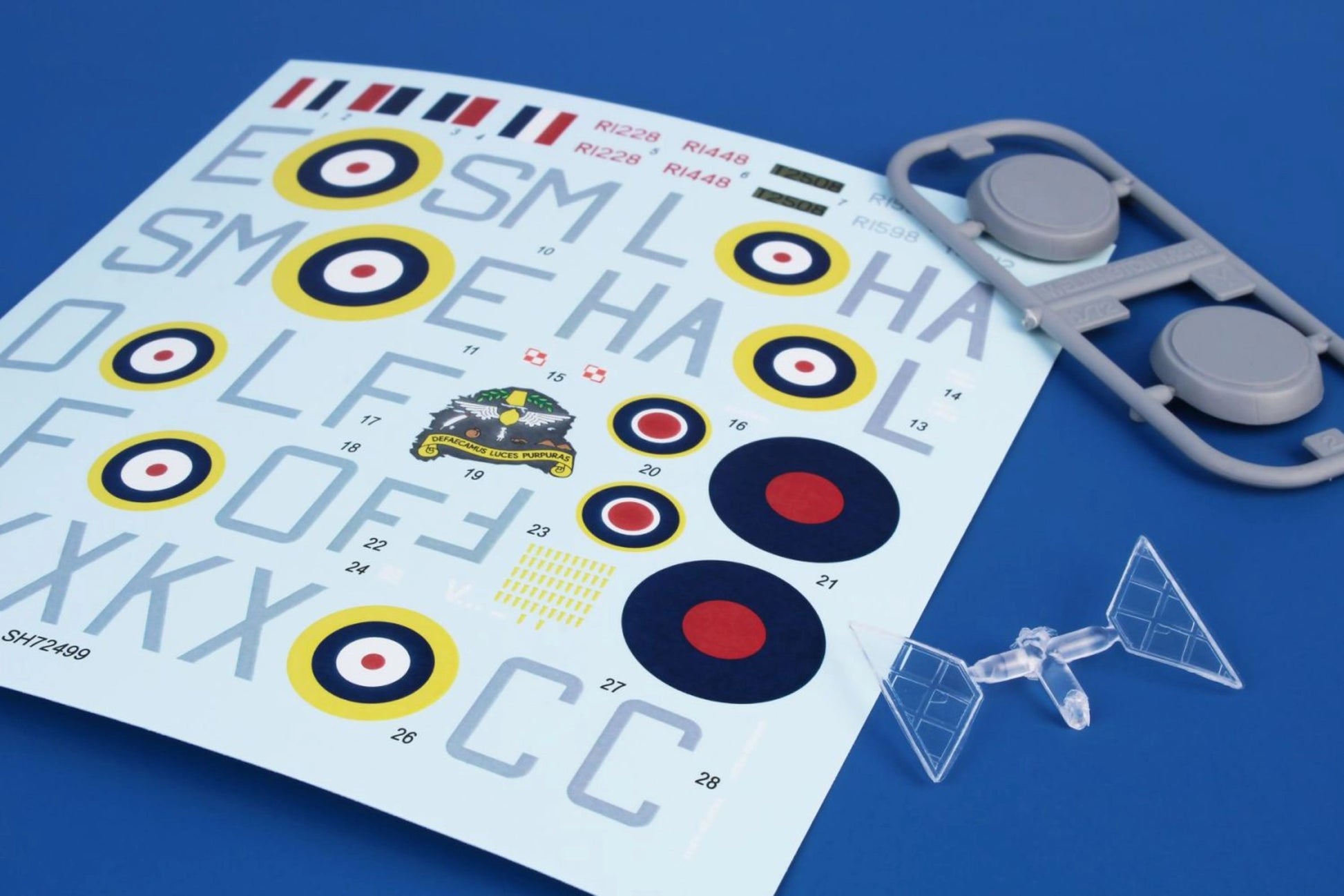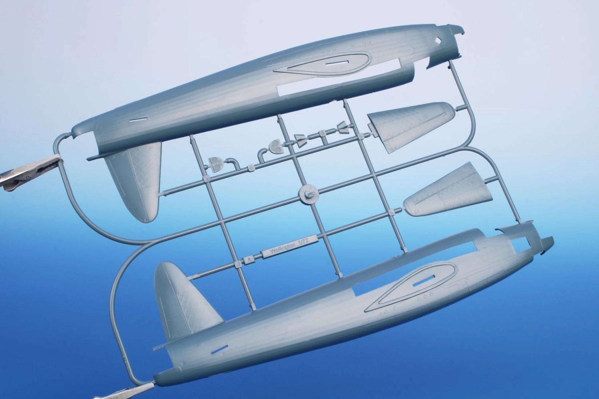 This 1/72 scale kit includes six sprues of gray plastic, a clear parts sprue, resin exhausts, and a decal sheet featuring markings for two Polish squadron aircraft—one in an anti-submarine camouflage—and several RAF night raid schemes. Among these are the Polish aircraft Elzunia (Lissie), two RAF Wellingtons including one flown in Africa and another funded by Nana Sir Ofori Atta I of the Gold Coast, plus a distinguished aircraft from No.311 (Czechoslovak) Squadron.