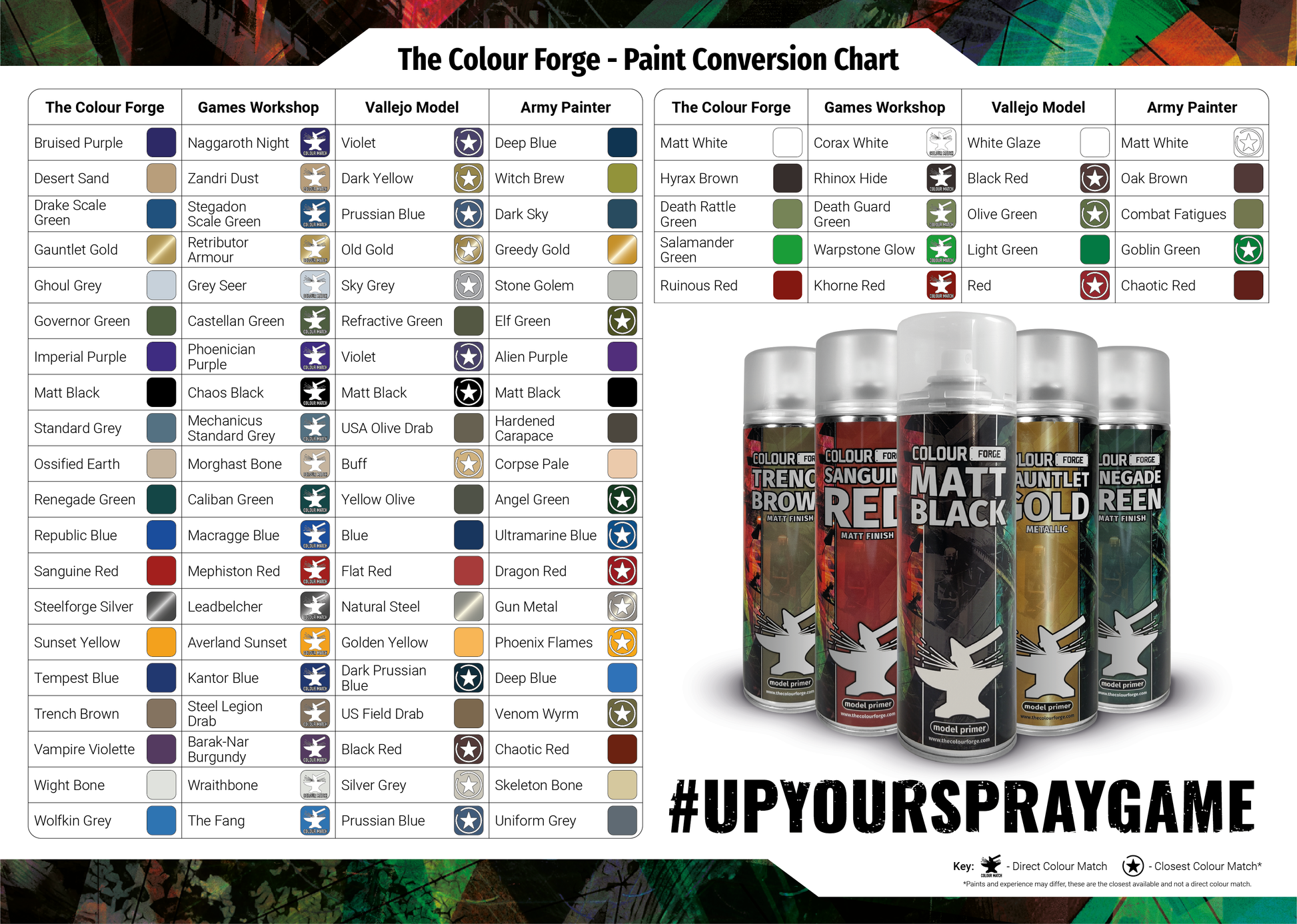 Colour Forge 500ml Primer Spray Cans offer a reliable and consistent base coat for miniature painting and model finishing. Developed with a fine pigment formula, these primers provide excellent surface coverage and adhesion across plastic, resin, and metal, helping to highlight detail without obscuring it.
